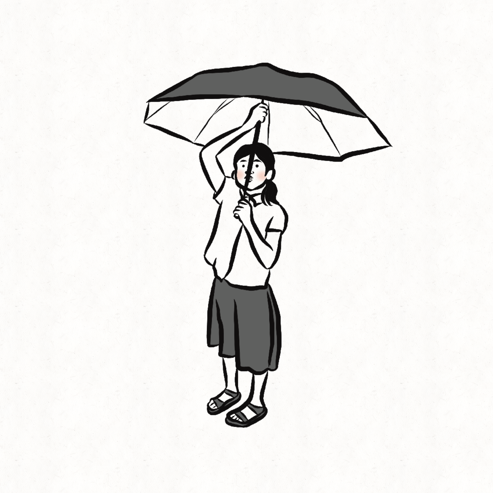 我画的是朋友的孩子,大太阳下撑伞。她的表情看着觉得有点忧郁。我觉得雨天比较适合她。撑伞女孩的歌怎样写呢?