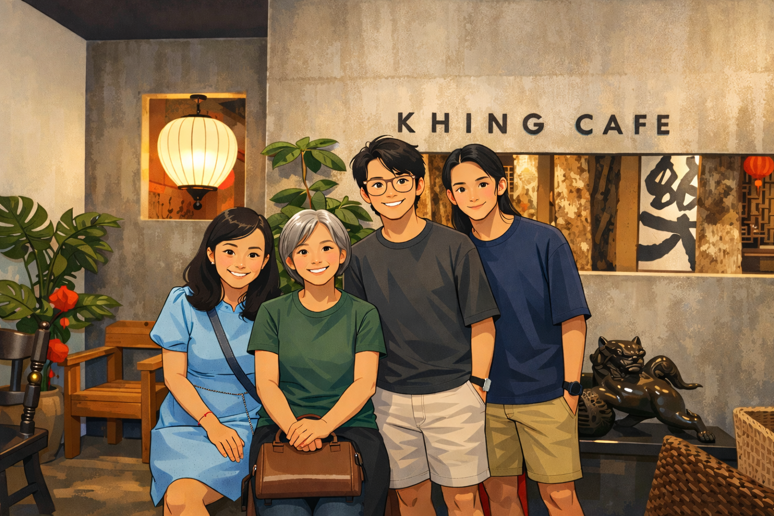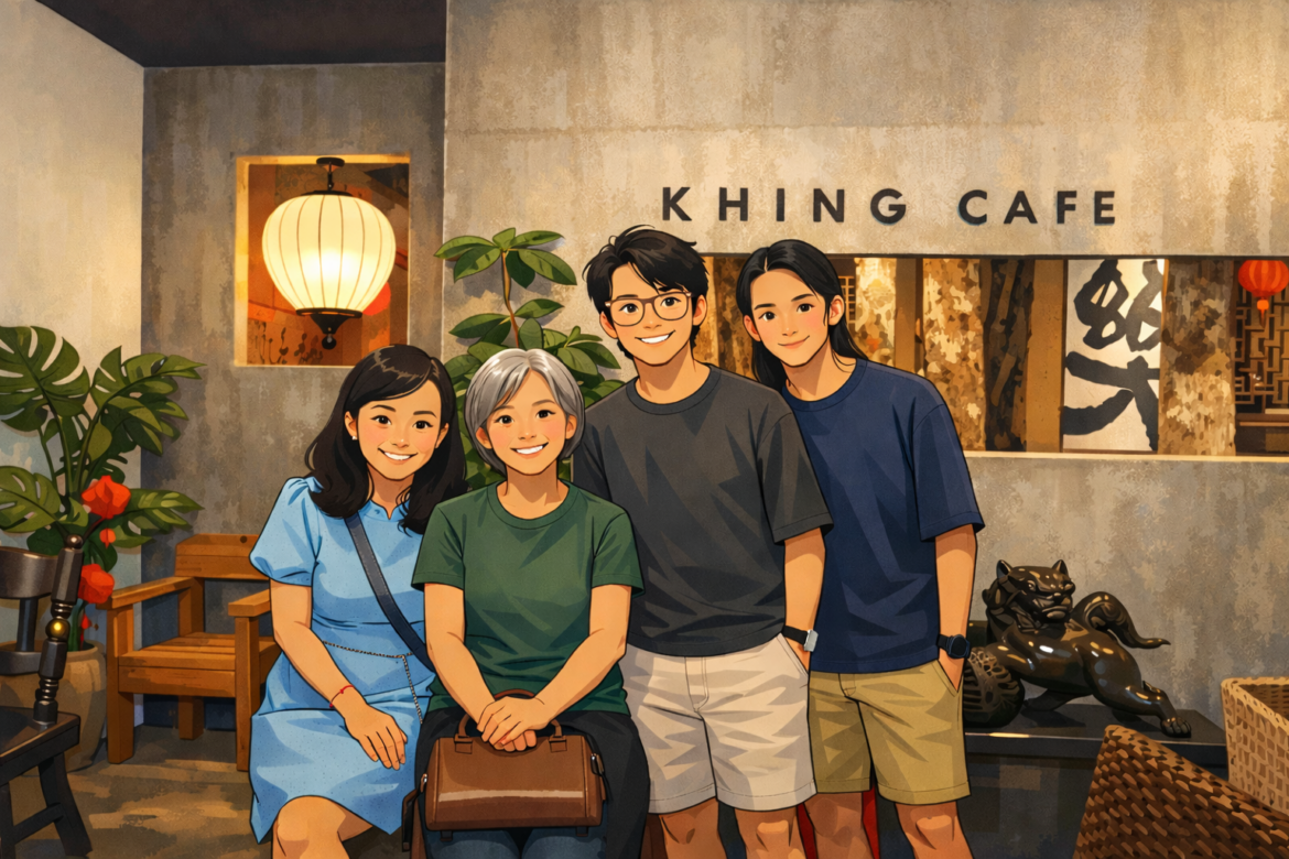 就在那個微雨潤無聲、熱氣尚未散去的午後,我拉開門,迎來一室的咖啡香外,尚有祥序拿著手機準備出來迎接的身影。江老師和老么早已入座,在溫暖燈光映照中,向我暈開兩朵熱情的笑容。