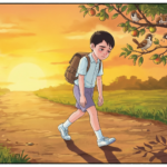 然后他在踏着脚车,跑到一棵树下,这是一棵番石榴树,他爬上树上,采番石榴来吃,吃了之后,他躺在树干上想,他究竟还做过什么事情?他偷过人家的脚车,他偷过人家的玩具枪,他捉过无数的小鸟、麻雀,他捉过无数的蜻蜓。他捉过无数的小鱼、也让鱼儿打架,他制造利器、一柄小铁剑。还有什么?他想不起来了。最后他决定不在犯了,他在番石榴树上良心发现。