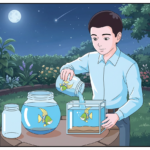 回到家,他把两个瓶子拿出来,各别放了一条鱼,加起来就是两条鱼。这两条鱼,他各别放在不同的原子袋中,然后踏脚车到一个湖中,把那两条打架鱼放了,放到湖中各别不同的地方,很快两条鱼便不见了。