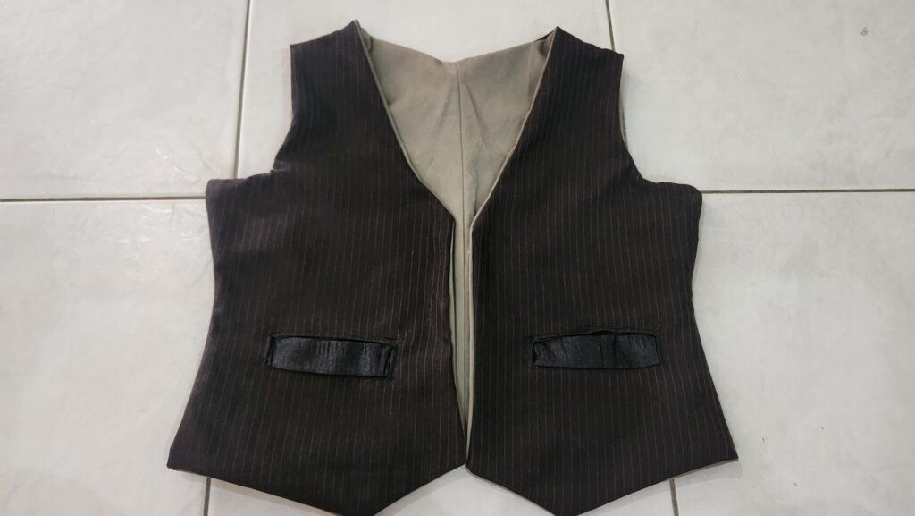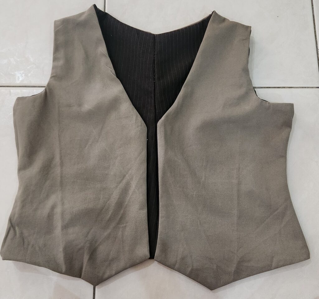 這次我想做有腰身,再添加口袋。看了好幾個版本,選一個自認為看懂又最簡單的做法著手。最終結果是深度夠,伸手進去的寬度太窄。第二件黑線條西裝布的馬甲,改寬了保留深度又變太淺。沒有一次能完全做到滿意。奇怪,兩個口袋最後一定有點不平衡。我放棄調整了。🤣🤣
