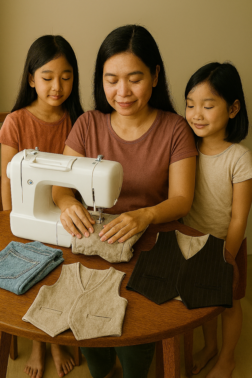 好喜歡她們穿著馬甲到處跑的活潑身影。最重要的是,我又成功清掉了三條孕婦褲和一條半身裙。✌️✌️目前就剩下一條軍綠色的半身開叉長裙。好想做一條馬甲給我自己,可是感覺布不夠,包括內襯的布也還沒出現。先向宇宙下訂單,看何時會實現蛤🙏😜