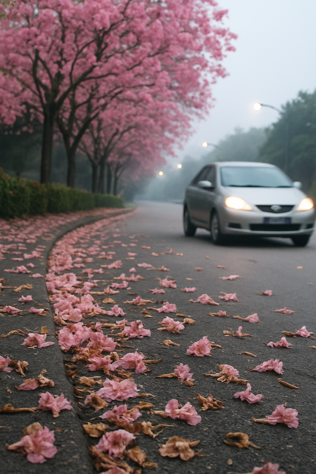 裹著一身的涼意,車子來到花園的小交通圈時,我抬頭看見落在路邊的殘花。粉嫩粉嫩的,突然就想起林黛玉的葬花吟:儂今葬花人笑癡,他日葬儂知是誰?只記得這兩句,其它如幻影,不復存。