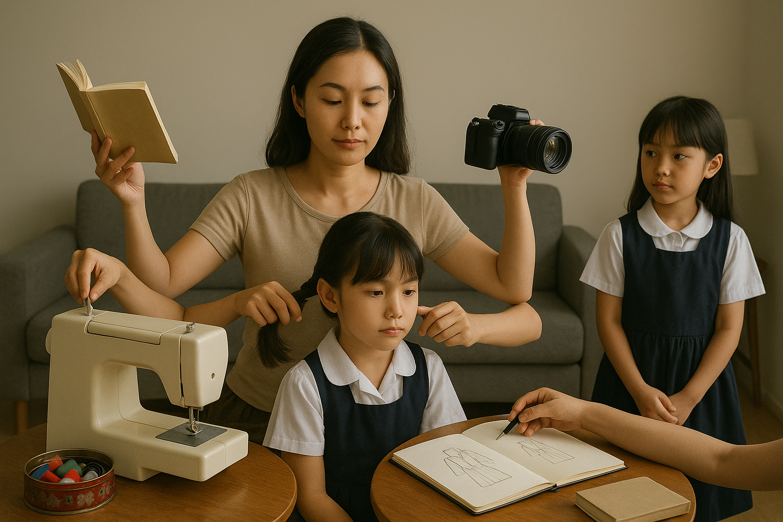 好一个 善于操作多重任务的超级勤劳妈妈。