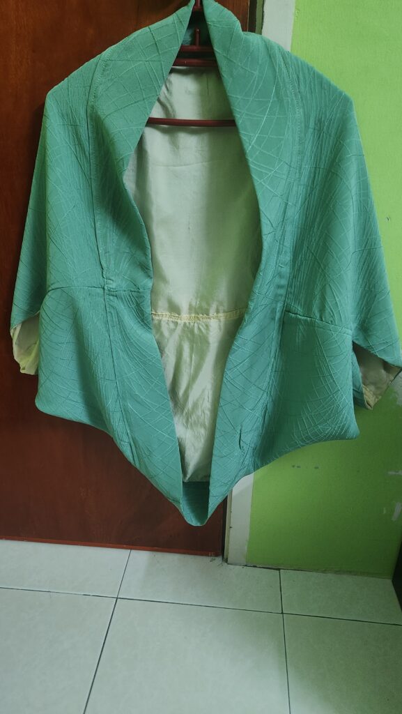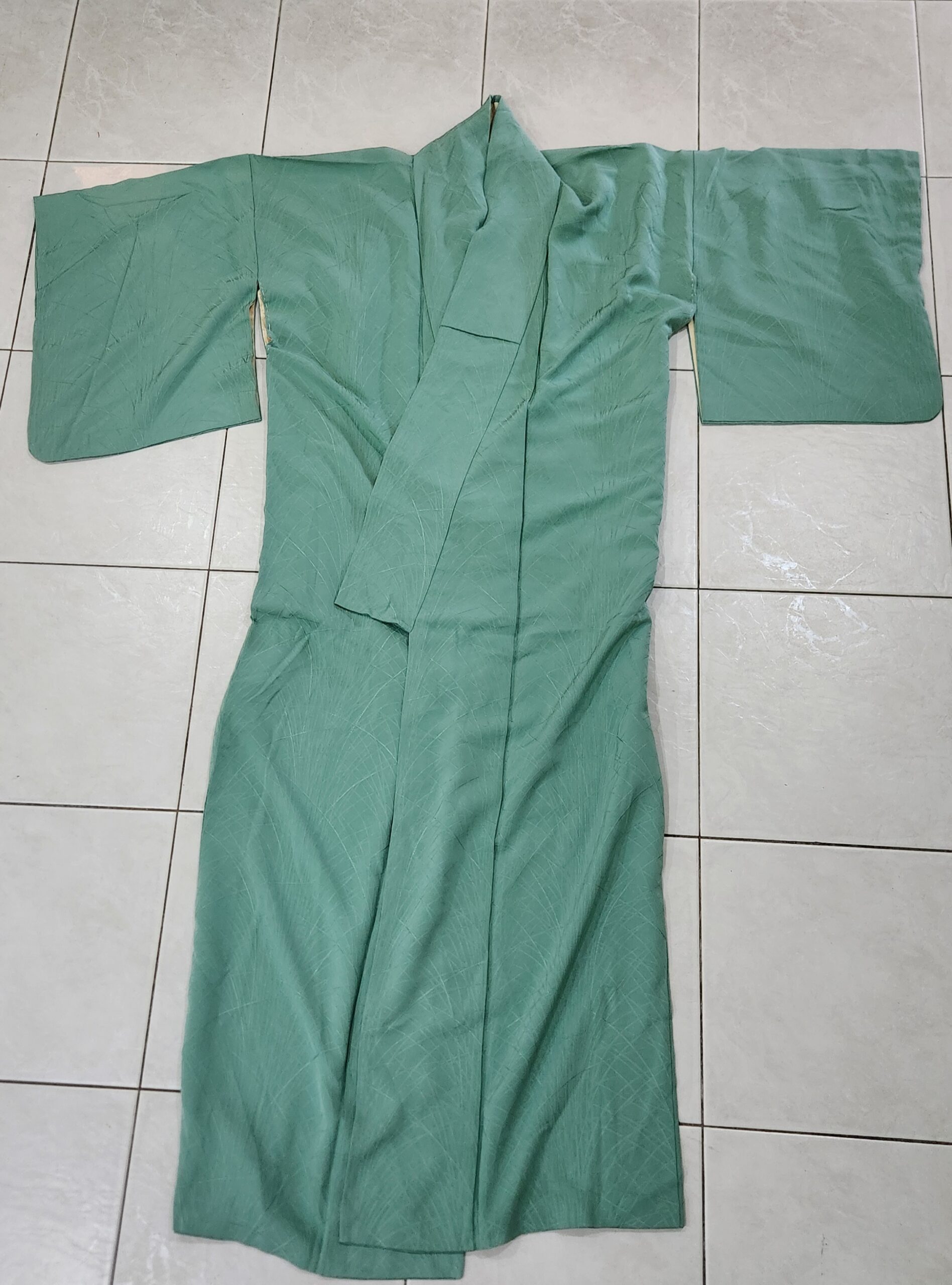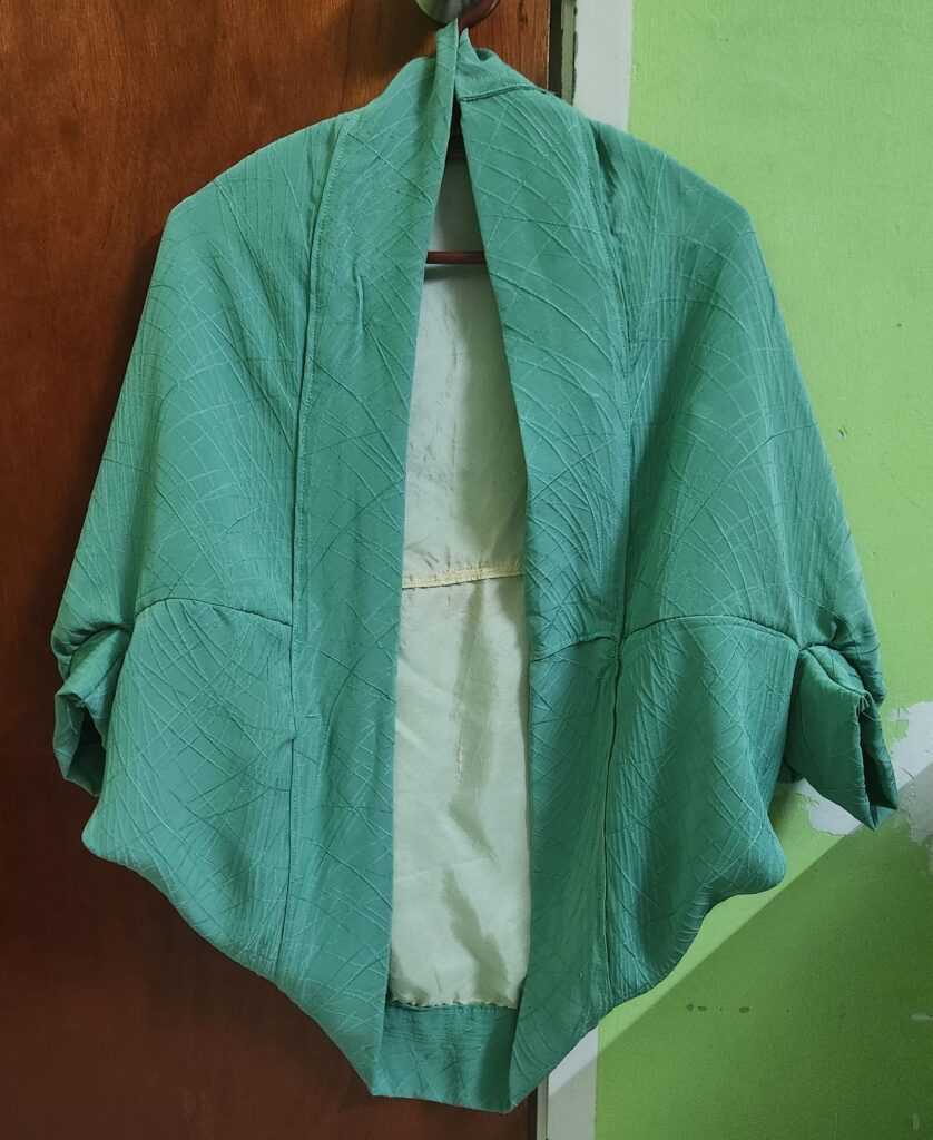 此件綠色和服,有著如竹葉般的暗紋。我對竹,也一樣有莫名喜愛;喜歡它有清風輕拂的優雅,總讓我能心靜下來。