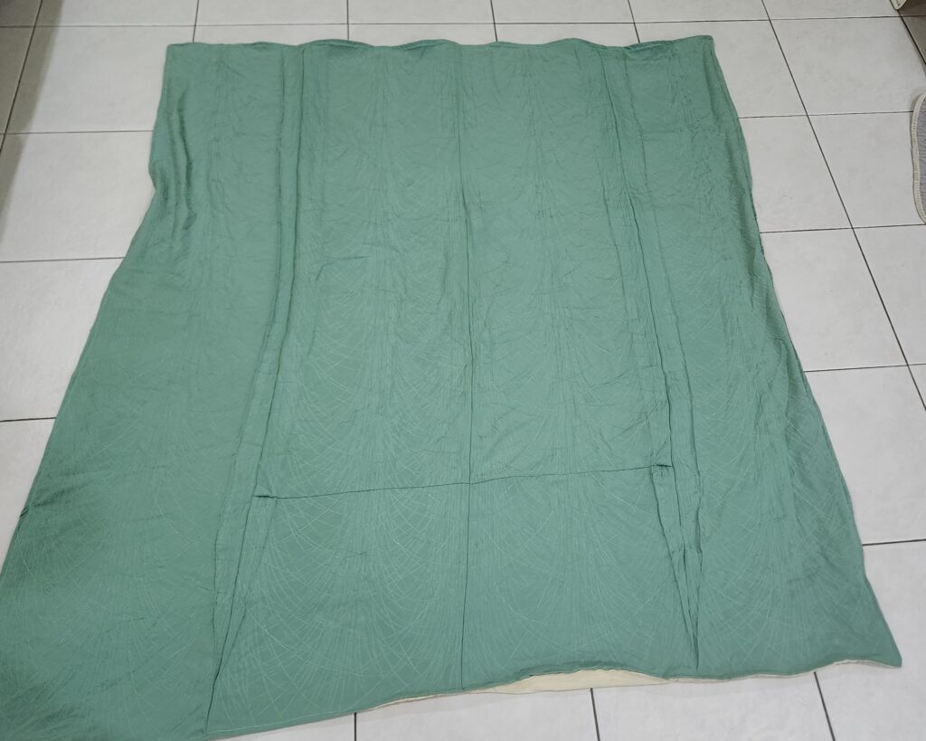 答應了老大,要做一條被單給她 。反正和服也是由幾條長方型的布組成。只是,如何能拼接到前後一致,才是最考功夫的地方。