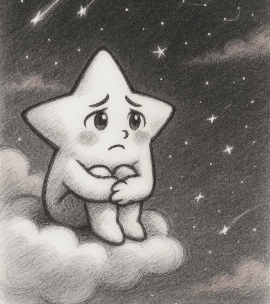 那一天,星星城的夜晚很寂静。月亮奶奶偶尔会眨眼,温柔地照亮整个山谷。而小星星,却只敢躲在角落里,对着自己轻声说: