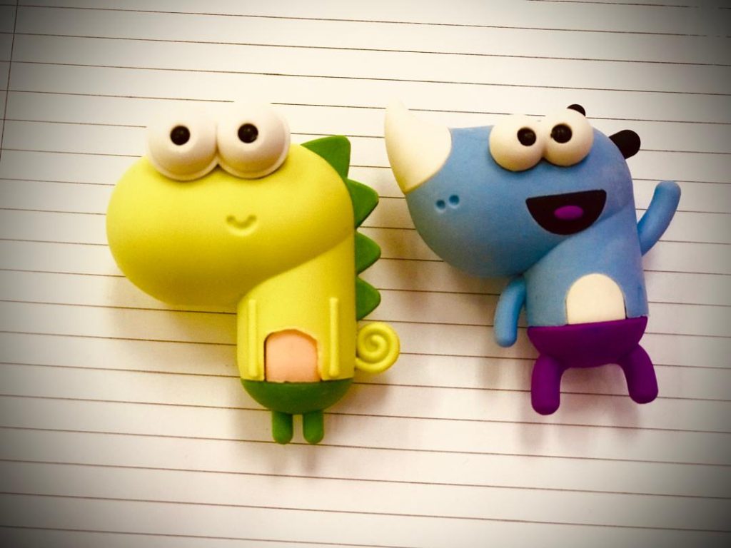 两星期前我家总裁逛书店时看中了一盒裹着可爱精致的树胶卡通角色,叫做左左。咋看下很像是小恐龙造型,脸部朝向左边,左左这个名字想必就是因为脸部的方向。我们纳闷这玩意的功用到底是什么,就拿着它向柜台的服务员询问,服务员左看右看,也翻盒查看,结果她傻笑地看着我们,微微地摇头,表示不知。我也傻笑地望一望总裁,她抓抓头示意要将它买下,心想这玩意确实有趣,就用一碗云团面的价格将它带回家了。