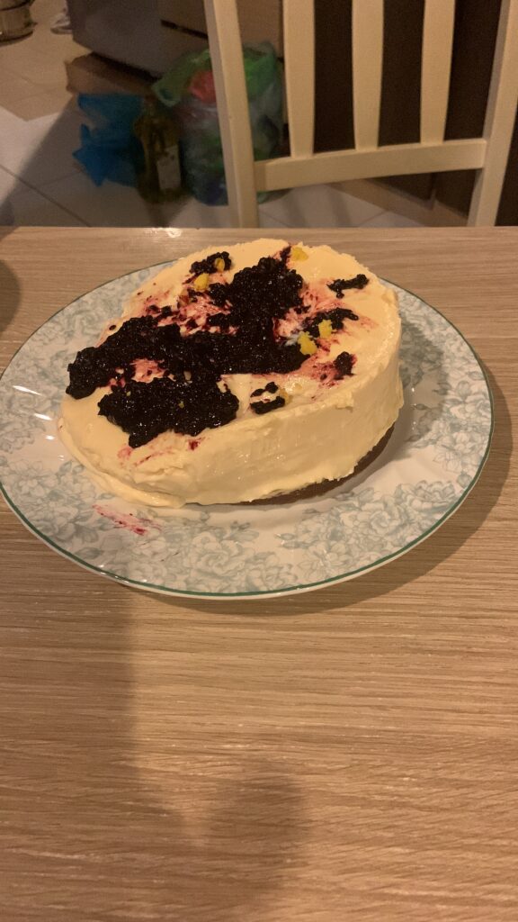 他小心翼翼地将蛋糕搬出烘炉冷却,然后涂上自制的蓝莓酱,准备带去给外婆,姨舅和表妹们品尝。那个晚上应该是他有史以来最开心满足的时刻,不止自己亲手制作了一粒蛋糕给家人品尝,外婆和姨舅们吃后都赞不绝口,说已经达标可以卖给人了。那晚我都来不及品尝就被解决了,结果过了几天他又作了一粒给我,我很高兴,不是因为他孝顺,我知道他其实是自己还想吃,主要是他从这一次的成功经历中逐渐增加信心,为将来更难的事情而铺垫。