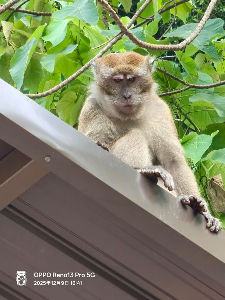 再从长廊走出来,可以看到这里也有许多精品店和小摊。我妈捕捉到在垃圾桶偷吃的猴子被吓得跳上屋顶的画面,真的很可爱。