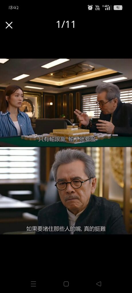 3. 这部剧和近年的港剧很不一样!这部剧多了很多温情的画面,比起罗永贤监制拍的强人系列,这部剧会更打动人心!近年来,很多港剧不是在权斗,就是在争个你死我活。说实话,我看到有点审美疲劳。而这部剧让我短暂逃离港剧的“办公室政治” 这部剧也有权力斗争,但不是主线,而且宗叔这个角色看到最后还挺让我心疼的。一开始,我觉得他很坏,像极老狐狸,一直想要吃掉司徒家的麻将馆,但看到最后,我开始认同阿铁说的那句:他不想在临走前,还咽不下这口气,所以他抱着病体都要和司徒久斗,而后面他被司徒久一家融洽的氛围感动,甚至装老人痴呆,让司徒久叫自己爸爸。多年来未感受家庭温暖的他,在晚年也得到短暂的快乐和安慰。最后,他了无牵挂地离开这世界,留下自己的麻将王国和上市公司给司徒久和阿铁。
