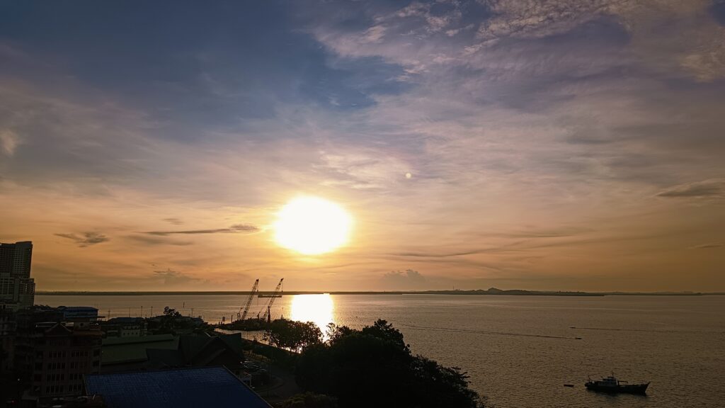 金色的陽光灑落在海面上,
