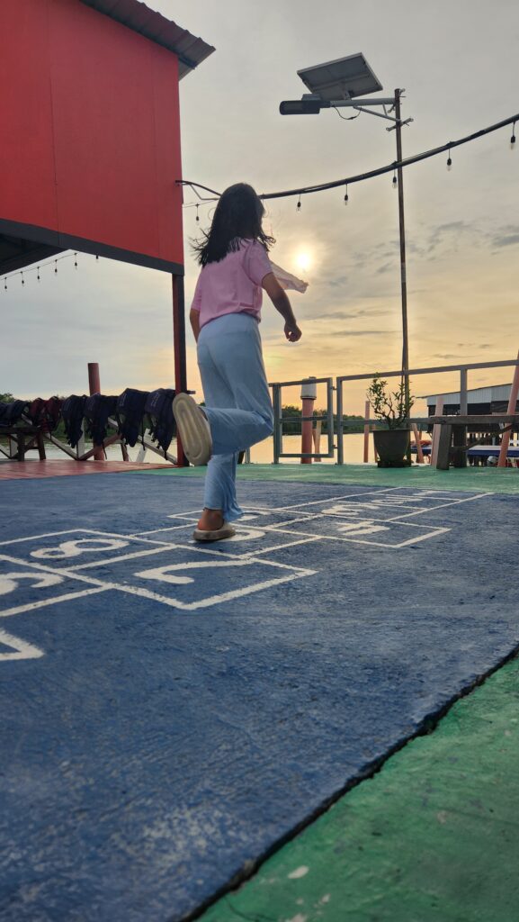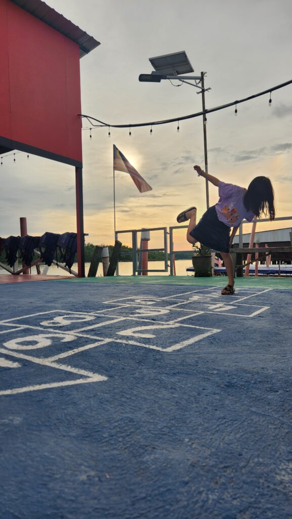 👩‍👩‍👧‍👦17.9.2025🐍星期三🏘️ 自從天空之境碼頭的地上畫有一個跳房子圖案後,那裡留下她們不少的笑聲。 說真的,我都忘了 ...