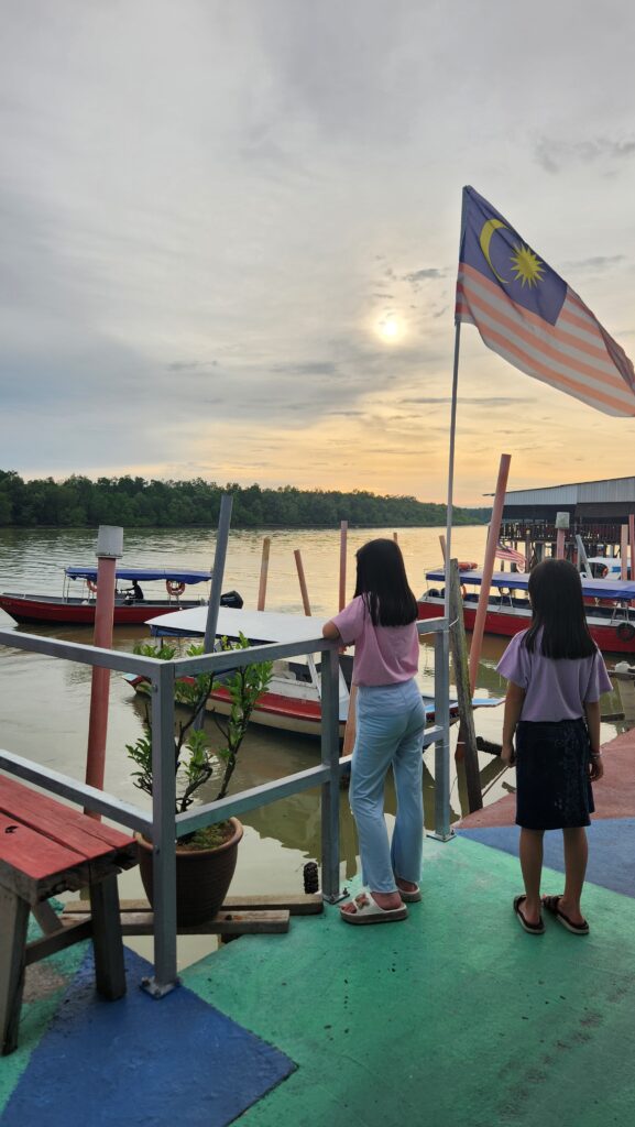 夕陽透過國旗,溫柔地照耀著孩子微紅的臉龐。我又想起「歲月靜好,現世安穩」這八字真言,此刻便是了。沉浸片刻,兩個好玩的孩子,轉身又坐在紅牆前的長櫈上自嗨。老大甚至還叫我幫她拍視頻,玩著走來走去的招式。我也不知她從那學來,又沒有看小紅書啊~🤣