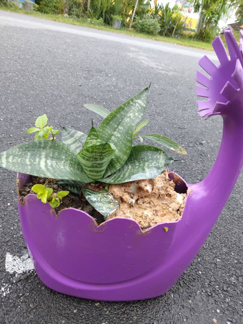 話說虎尾蘭的那個洗衣液瓶子,我也曾經拿來廢物利用,刻成天鵝造型。可以耐個5-6年,今天天鵝脖子斷了。