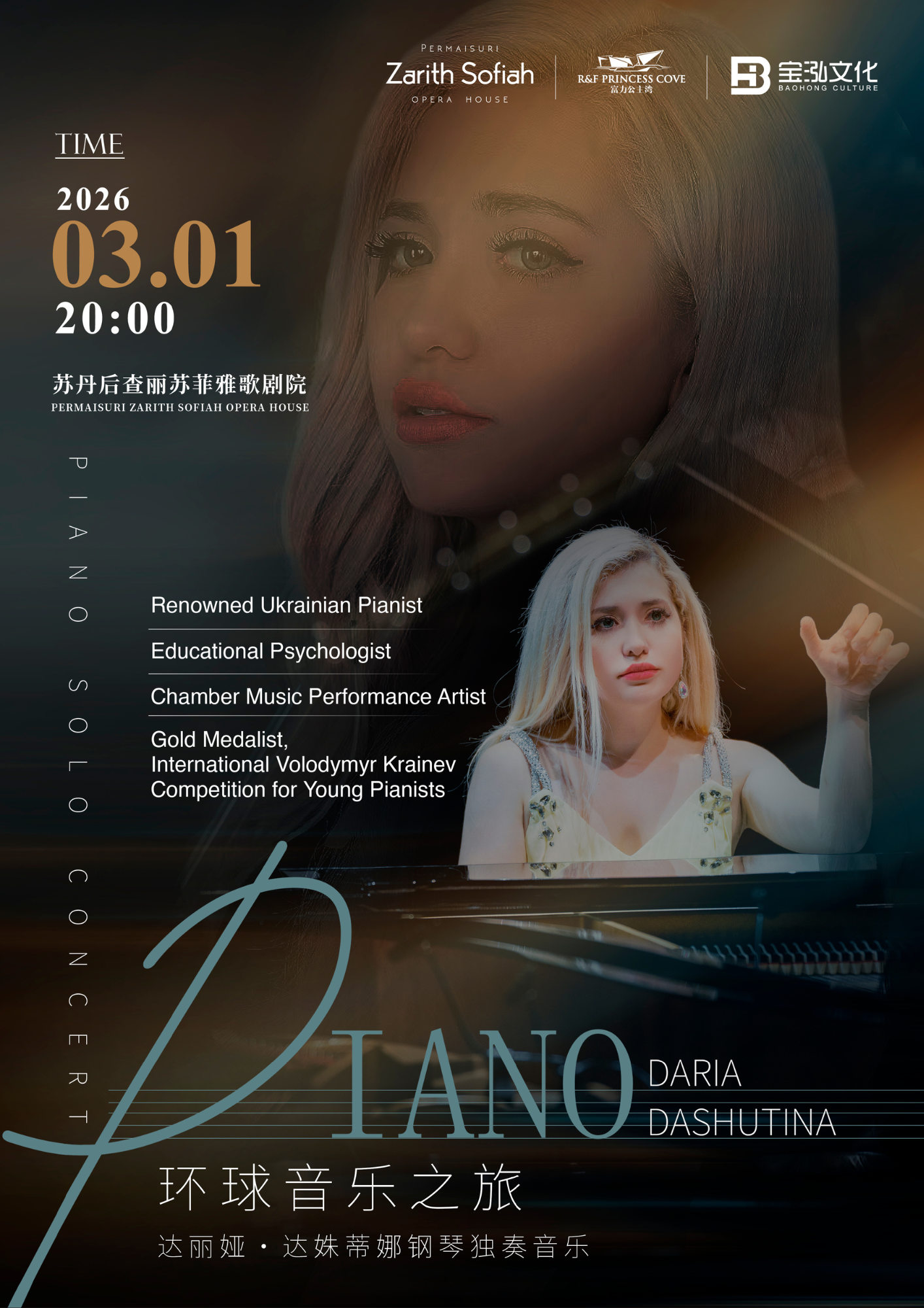 乌克兰著名钢琴家、教育心理学家、室内表演艺术家、弗拉基米尔国际钢琴大赛金奖获得者—— Daria Dashutina出生于1990年4月,1997年考入哈尔科夫中心音乐学院,师从于Balicheva N.I(前苏联著名钢琴教育家)。2008年本科顺利毕业,并于同年以优异的成绩考入哈尔科夫州立艺术大学,师从教授Goreckoy N.V(前苏联人民艺术家巴什基罗夫教育学的继承人)。 2013年研究生毕业,同年以助教的身份在学校学习并开始撰写博士论文。2016年顺利通过答辩,同年获得博士学位。