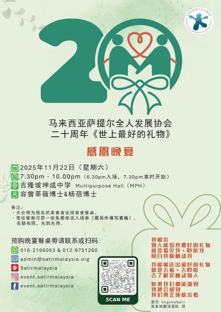 此座谈是马来西亚萨提尔全人发展协会庆祝20周年《世上最好的礼物》感恩晚宴,所附设的座谈节目。